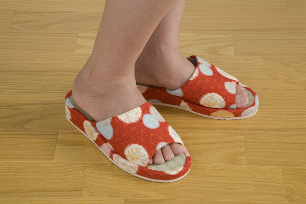 い草ヒールアップスリッパ手まり2色組 全長:約25cm ヒール高:約3.5cm適応サイズ:約22〜24cm表生地:ポリエステル100%中敷:い草中材・底材:EVA樹脂※洗えません生産国:中国