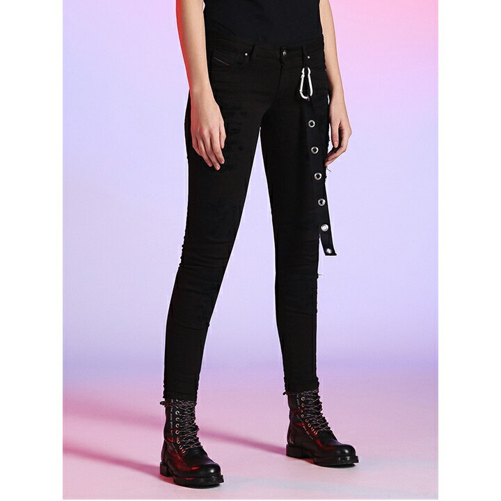 ★DIESEL ディーゼル レディース★リミテッドエディション クラッシュダメージ加工 ストレッチスリムスキニー ジーンズ デニム パンツ【LU-GRACEY】【W23〜28】【L30】【ブラック】die-l-p-b4-800 《メーカー希望小売価格58,300円》